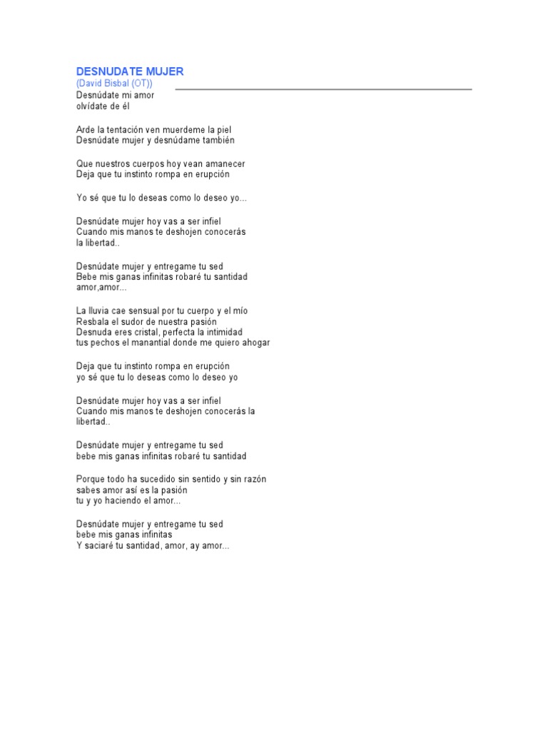 Desnudate Mujer Letra David Bisbal - Mim do lam lam7/sol re/fa# si7. Desnudate Mujer Letra David Bisbal / Chords for desnudate mujer.david bisbal.letra.