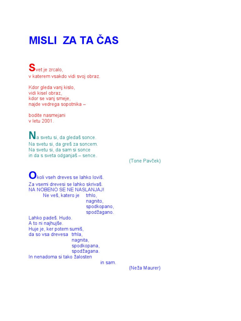 Verzi In Lepe Misli Za Na Kartice Enbox - Tone pavcek je eden najbolj priljubljenih slovenskih pesnikov.